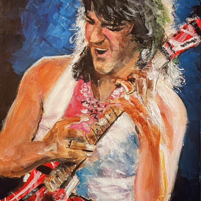 Eddie Van Halen – Summer Nights Portraits October 3, 2024 Permalink Eddie Van Halen – Summer Nights (2024) 14in x 18in Acrylic on canvas $400